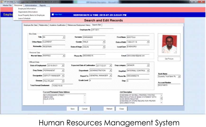 Our HRM has in-built functions which, in the course of registering employees’ records;